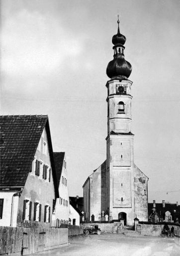 Der Elsendorfer Kirchplatz um 1930 und heute.
